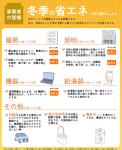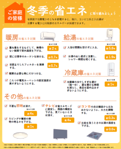 下記に添付しております「冬季の省エネ」メニュー、リーフレットも参考にしてください。